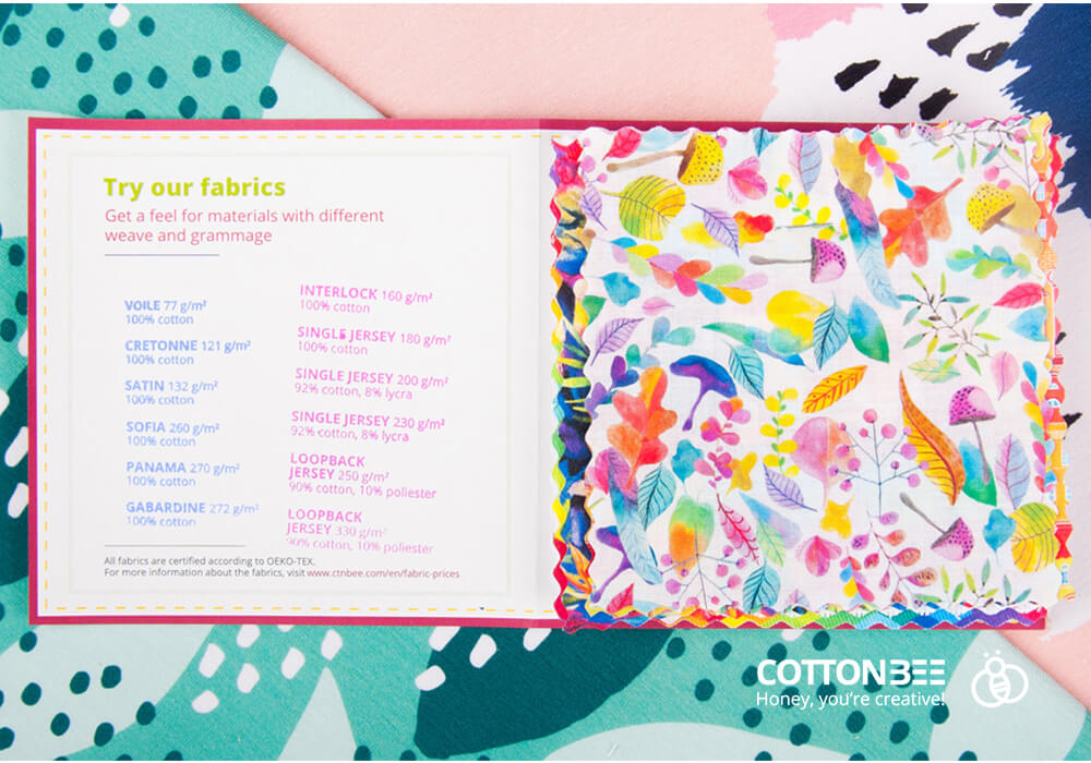 Der nächste Schritt bei der Wahl der Online-Druckerei für Textildruck, die Ihre Erwartungen erfüllt, ist die Art des Stoffs, den Sie bedrucken möchten. Einige Druckverfahren sind für bestimmte Stoffarten reserviert. Wenn Sie beispielsweise den Sublimationsdruck nutzen möchten, müssen Sie sich damit zufriedengeben, dass der Druck bei diesem Verfahren nur bei Stoffen möglich ist, die zu 100% aus Polyester bzw. aus Mischgewebe mit hohem Polyestergehalt bestehen. Druck mit Säurefarben bewährt sich am besten bei Stoffen aus Wolle und Seide, beim Pigmentdruck hingegen erzielt man die besten Ergebnisse bei Baumwollstoffen. Sehr wichtig sind außerdem die Qualität und die Herkunft der Textilstoffe. Bevor Sie sich für das Bedrucken eines Stoffballens entscheiden, überprüfen Sie die Herkunft der Stoffe, die die Druckerei anbietet oder ob sie z.B. über das Zertifikat OEKO-TEX verfügen.