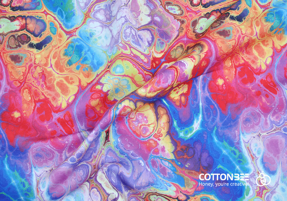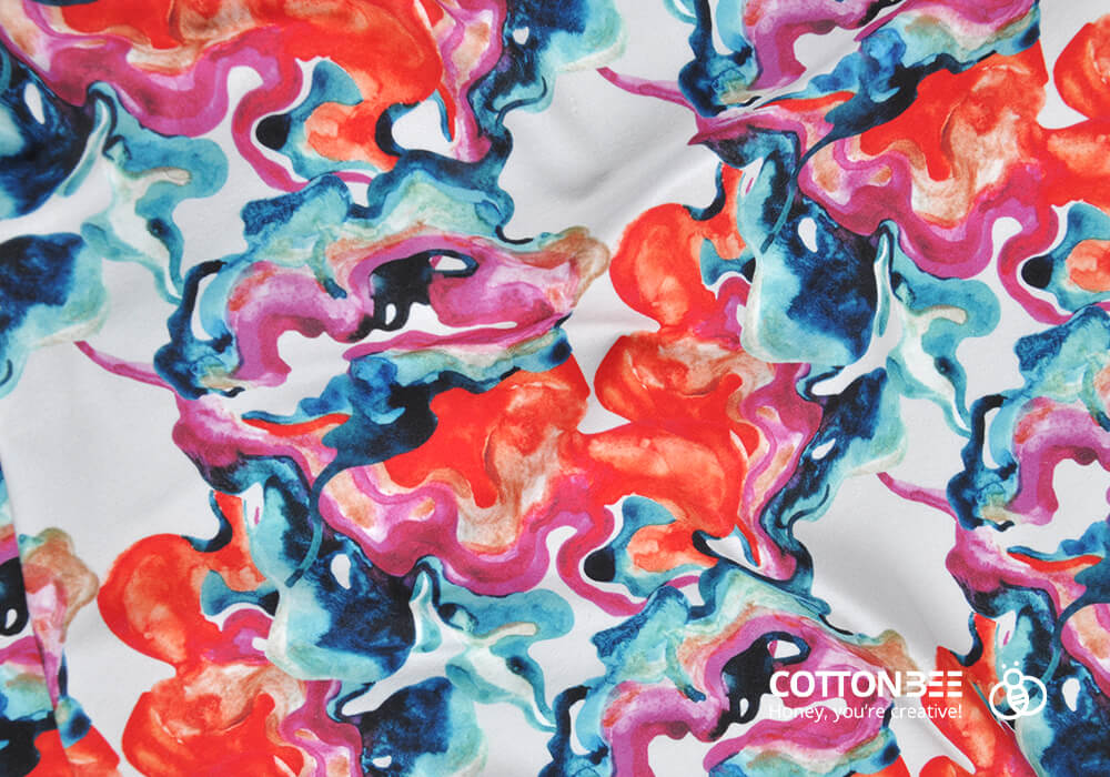 Paint swirls fabric is an excellent choice, especially during the summer season. That is exactly when people prefer to experiment with colours and decide on unusual combinations – playing with fashion gives joy and happiness from creating outfits that stand out from the traditional ones. Fabric with this design steals the hearts of people looking for a bit of craziness and an alternative to classics. Clothes in colourful blots look good when combined with minimalistic jewellery and accessories because they still remain the main aspect of the outfit in such an arrangement.