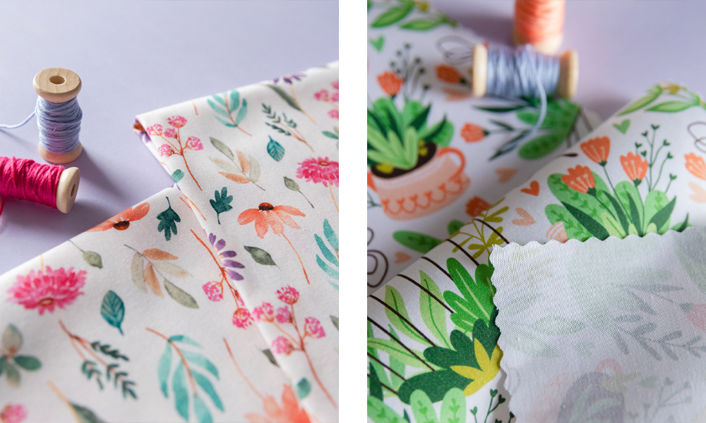 L’impression pigmentaire textile pose problème pour la reproduction de couleurs vives, en particulier du noir qui est légèrement moins profond par rapport à l’impression réactive. Les pigments sont mieux adaptés aux surfaces plus légères, par exemple, aux couleurs pastel et aux surfaces non uniformes. Les fleurs aquarelles dans une palette de couleurs claires sont le choix parfait pour l’impression par pigments. L’impression numérique est une impression de surface, potentiellement sujette à des dommages. Par conséquent, il n’est pas recommandé de frotter les tissus imprimés par pigments, en particulier lorsqu’ils sont mouillés.