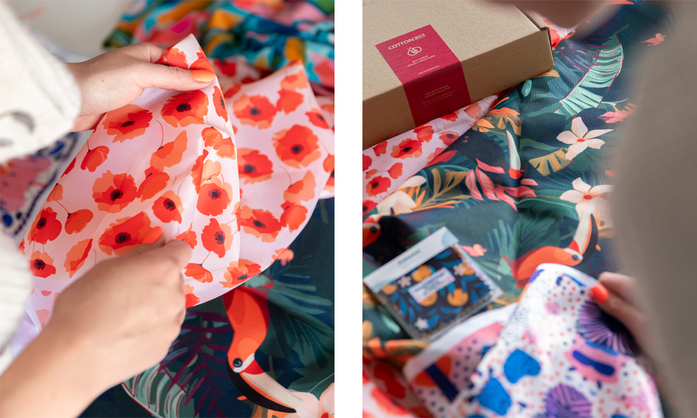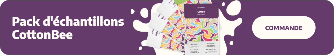 Par exemple, pour imprimer 1 mètre linéaire d’un motif avec des pigments sur un tissu en coton, vous paierez chez CottonBee à partir de 16,90€ par mètre linéaire de matériau imprimé, et le délai de réalisation de cette commande est de 5 jours ouvrés au maximum (souvent moins). Une commande aussi petite dans une imprimerie réactive ne serait pas acceptée pour la production, et il faudrait attendre plusieurs semaines pour un rouleau de tissu entier. Il est judicieux de prendre en compte ces facteurs lors du choix de la technologie pour l’impression de vos projets.
