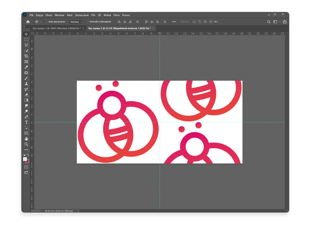 Zaczniemy od podstaw, czyli od stworzenia nowego dokumentu. Kiedy tworzysz nowy dokument od razu ustal jego wymiary, rozdzielczość oraz przestrzeń kolorów. Modele kolorystyczne dzieli się na RGB oraz CMYK. Z reguły przyjmuje się, że przestrzeń RGB dedykowana jest do urządzeń cyfrowych. Na takich kolorach pracują skanery, aparaty czy monitory. Kolory w przestrzeni RGB (Red Green Blue) powstają na zasadzie mieszania się kolorowych wiązek światła i zwykle charakteryzuje je żywa barwa oraz efekt “świecenia”. Przestrzeń CMYK kojarzona jest zwykle z poligrafią. CMYK, czyli Cyan, Magenta, Yellow, BlacK to nazwy kolorów, które można zauważyć na atramentach. Z tych kolorów, czy raczej ich procentowych wartości, powstają inne barwy w wydrukach. Jeśli projektujesz grafiki, które docelową mają zostać wydrukowane, zacznij tworzyć już w palecie CMYK. Dzięki temu kolory wydruku będą maksymalnie zbliżone do kolorów zaprojektowanej przez Ciebie grafiki.
